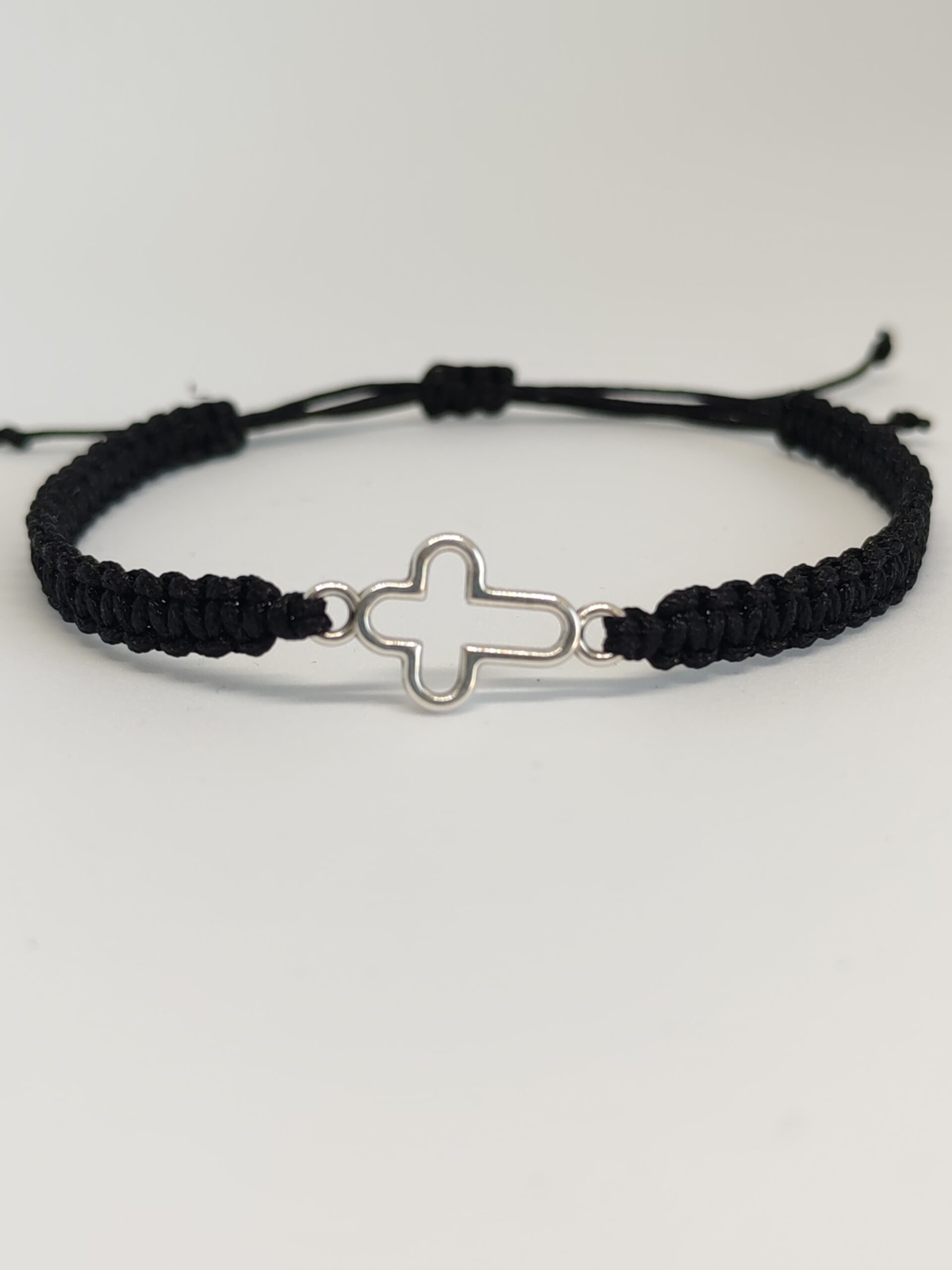 Makramee-Armband „Serenity Cross“ – Black & Silber